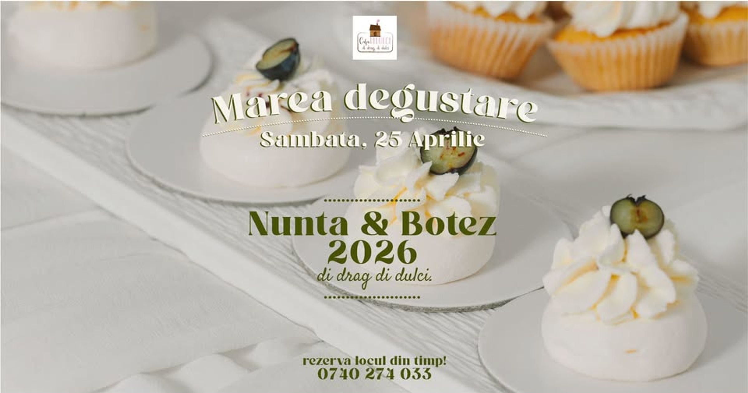 Se va intampla Sambata, 25 Aprilie 2026, intre orele 11:00 – 14:00, si toti cei care au in plan un eveniment major, Nunta & Botez, sau Eveniment privat, sunt bineveniti la Atelierul Didulci pentru a degusta selectia oferita.